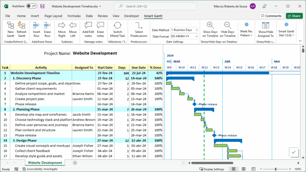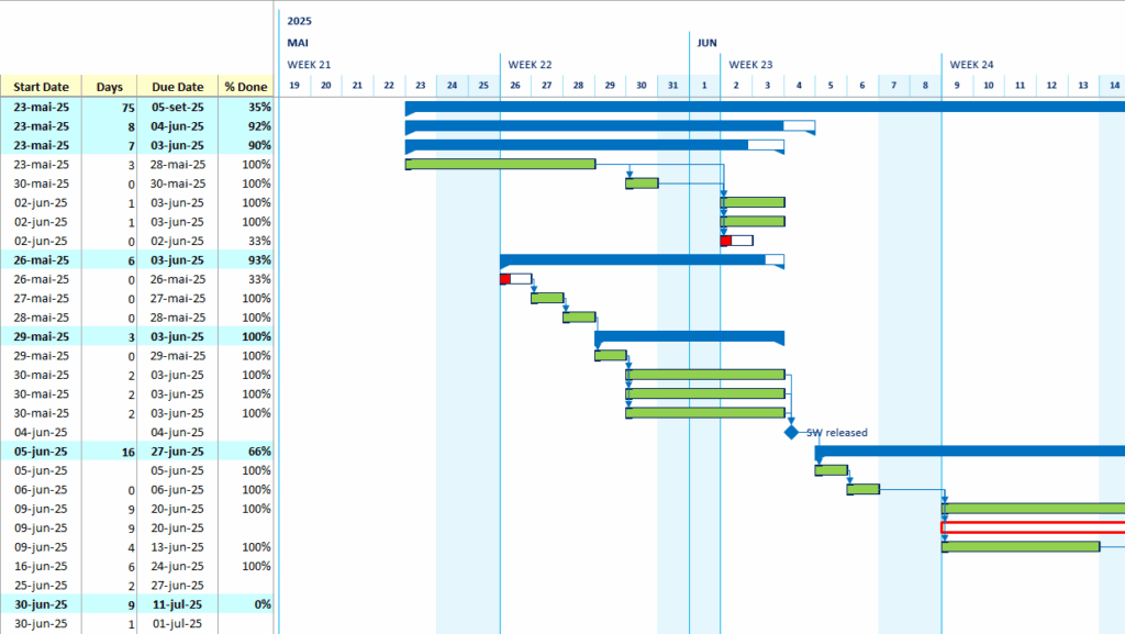 Building project schedules manually in Excel can be time-consuming โ formulas, formatting, custom charts. Smart Gantt was designed to simplify all of that.