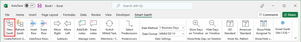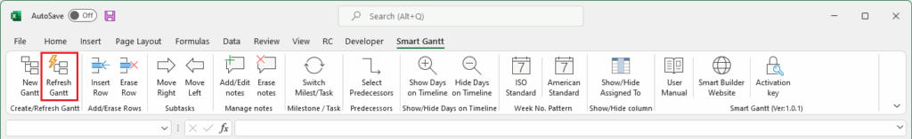 Tip: Every time you open your spreadsheet, itโs important to click โRefresh Ganttโ on the ribbon.
